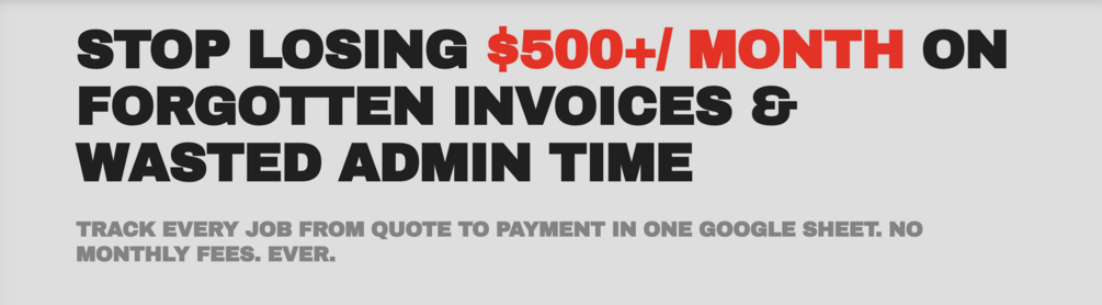 Stop losing money on forgotten invoices. Track jobs, automate emails, see profit margins. $97 one-time. No monthly fees.